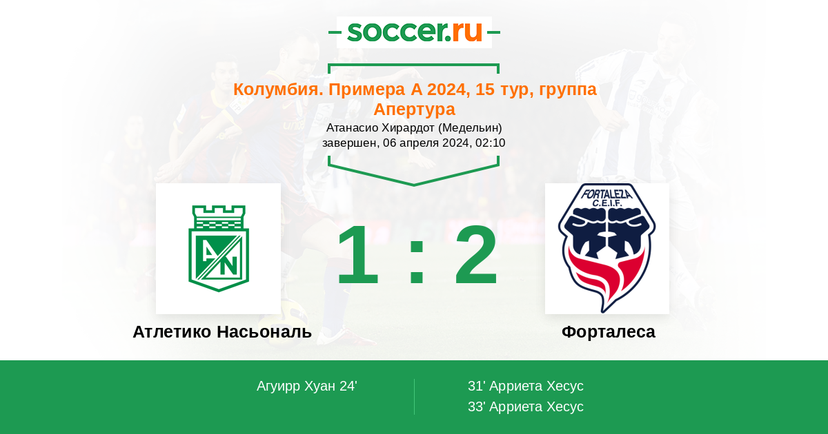 Протокол матча Атлетико Насьональ против Форталеса