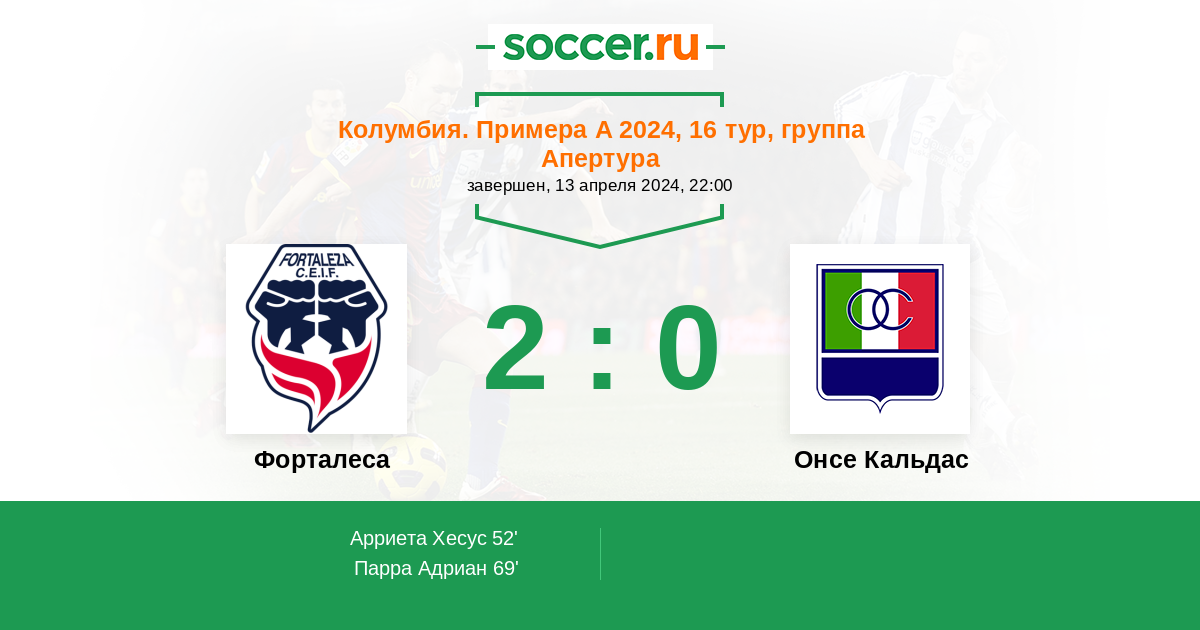 Протокол матча Форталеса против Онсе Кальдас