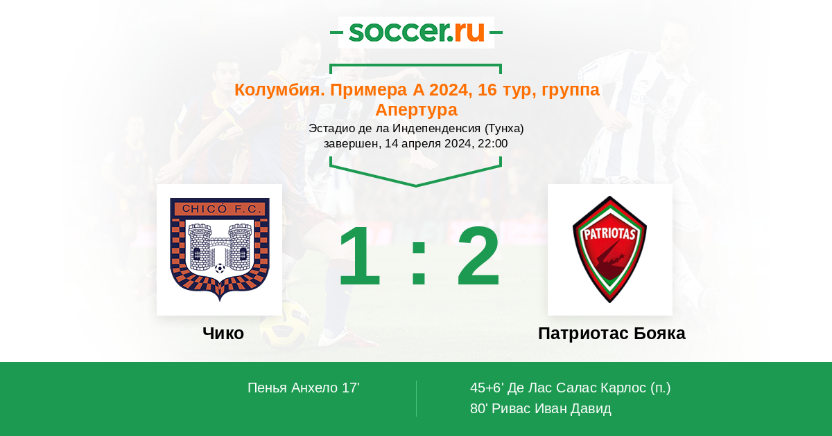 Протокол матча Чико против Патриотас Бояка