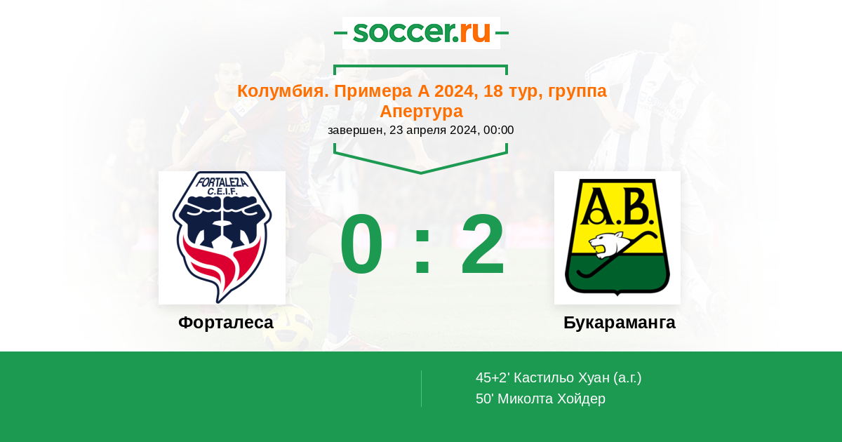 Протокол матча Форталеса против Букараманга