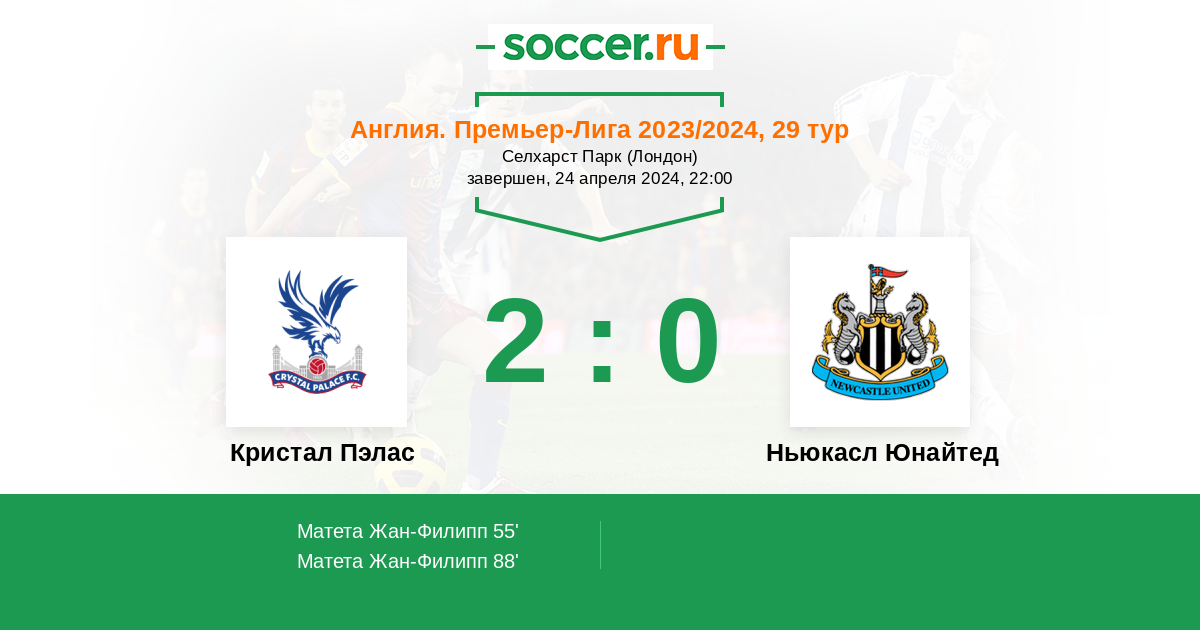 Протокол матча Кристал Пэлас против Ньюкасл Юнайтед