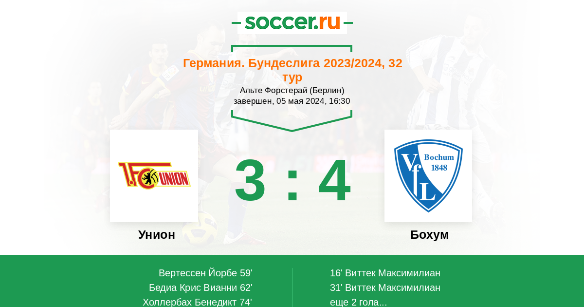 Протокол матча Унион против Бохум
