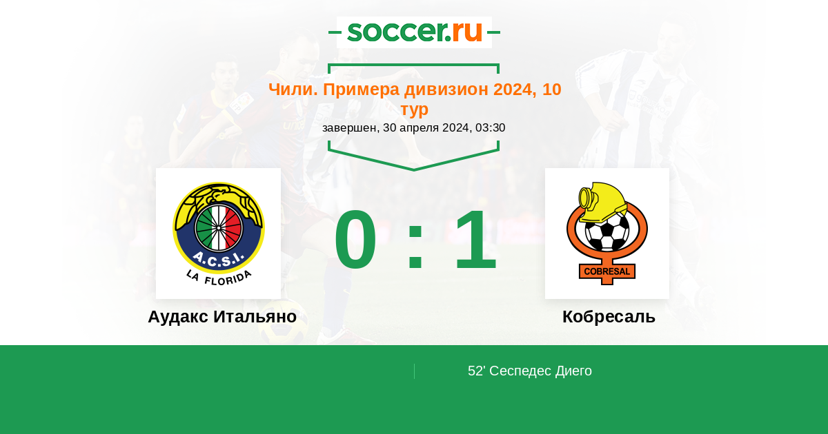Протокол матча Аудакс Итальяно против Кобресаль