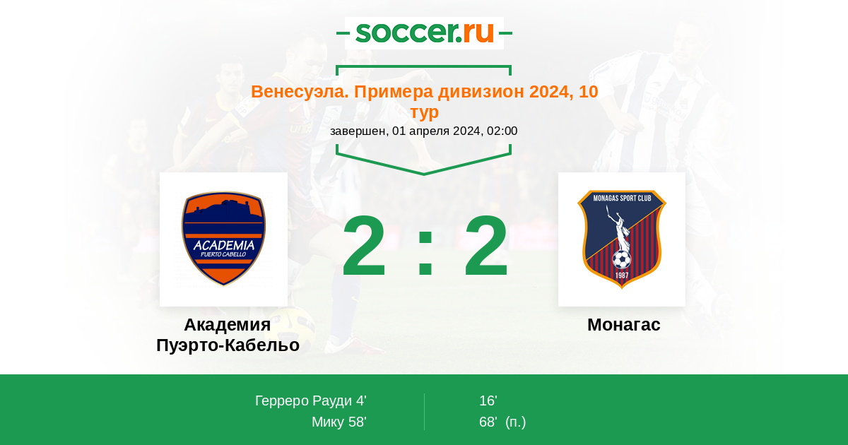 Протокол матча Пуэрто-Кабельо против Монагас
