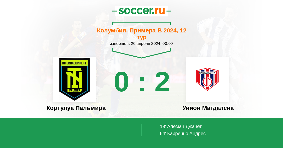 Протокол матча Кортулуа Пальмира против Унион Магдалена