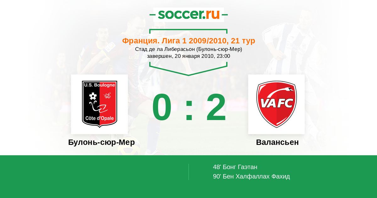 Протокол матча Булонь-сюр-Мер против Валансьен