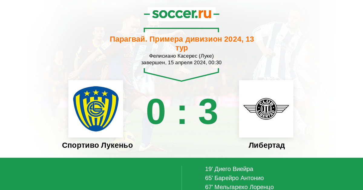 19' (0:1) Диего Виейра (5) (Санабрия Лукас (21))