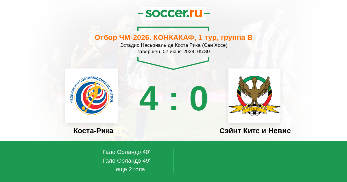 Протокол матча Коста-Рика против Сэйнт Китс и Невис