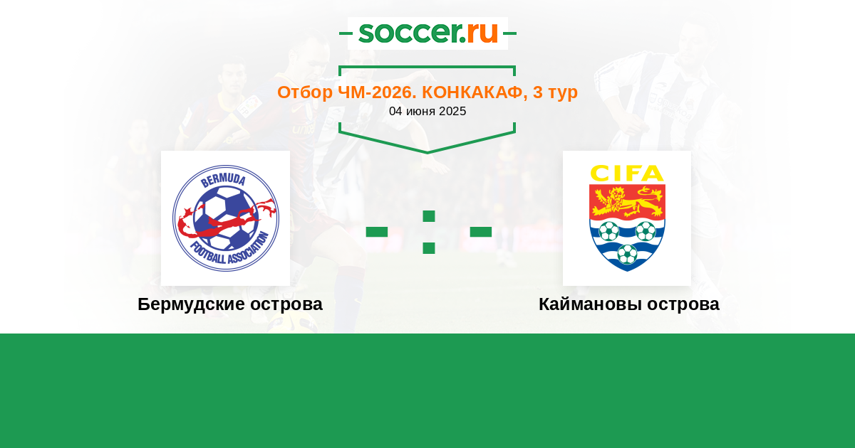 Бермудские Острова на домашнем поле оформят разгромную победу. Если сравнивать уровень сборных, но бермудцы выглядят гораздо сильнее, имея в своем активе сразу несколько профессиональных футболистов, главной звездой из которых является полузащитник Наки Уэллс из Бристоль Сити