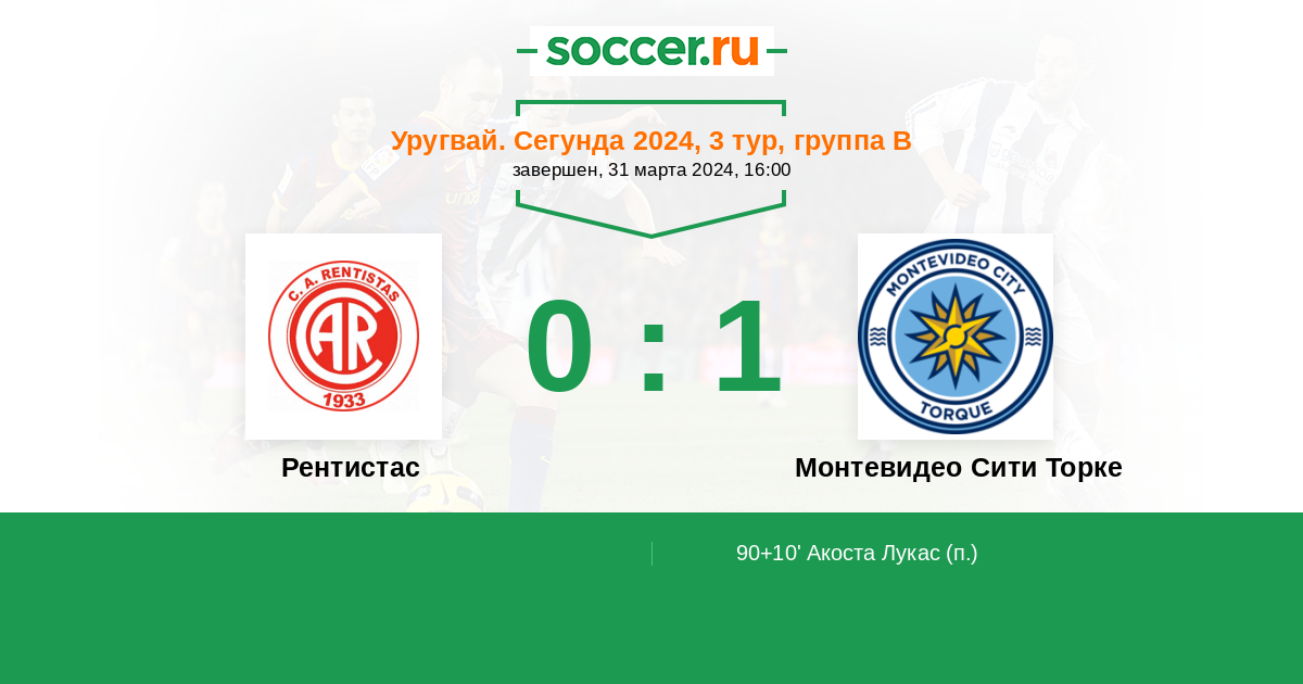 Протокол матча Рентистас против Монтевидео Сити Торке