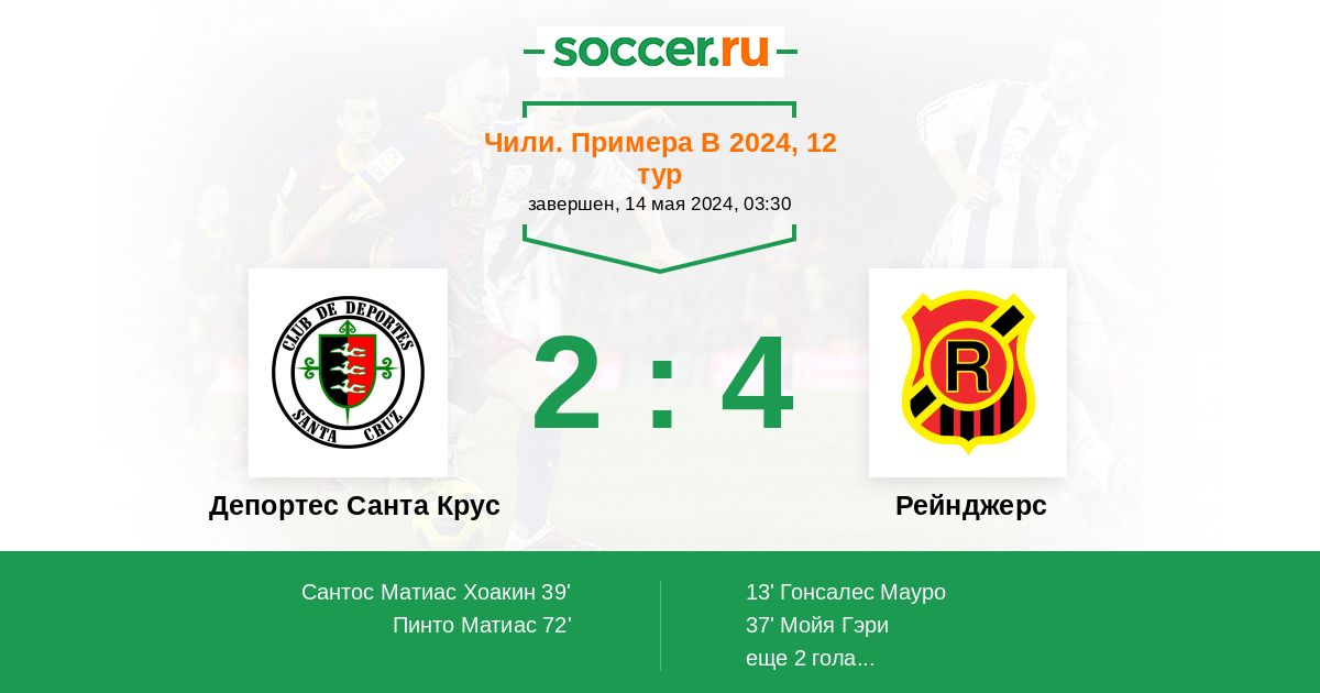 Протокол матча Депортес Санта Крус против Рейнджерс