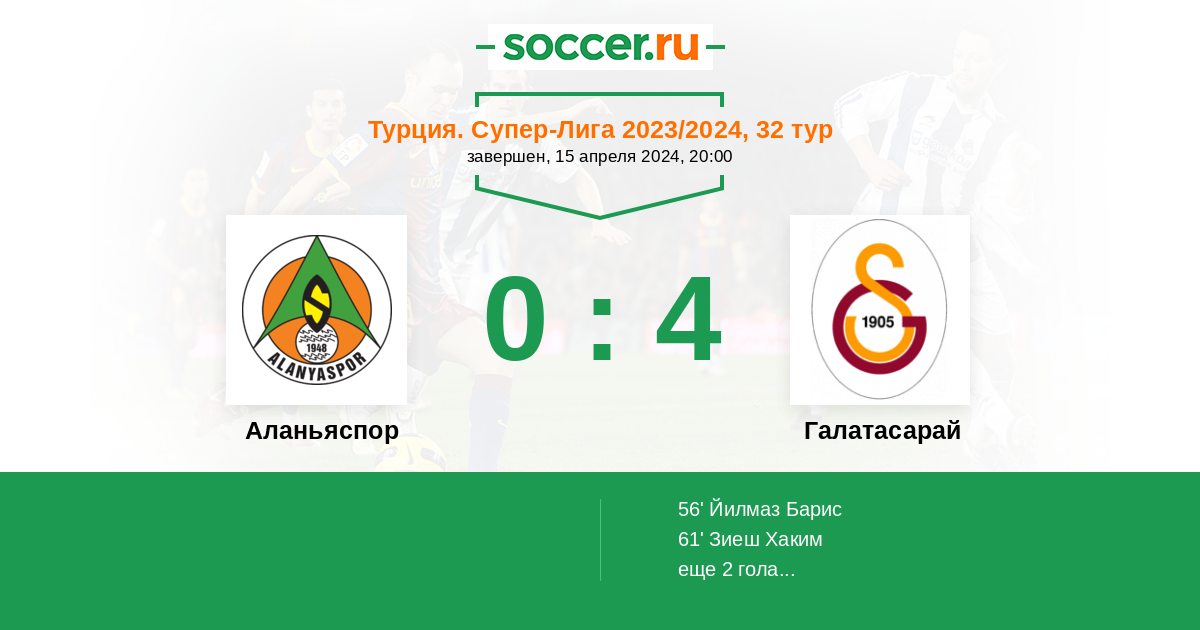 Протокол матча Аланьяспор против Галатасарай