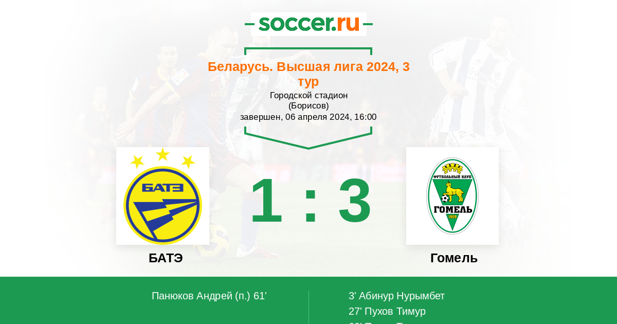 Протокол матча БАТЭ против Гомель