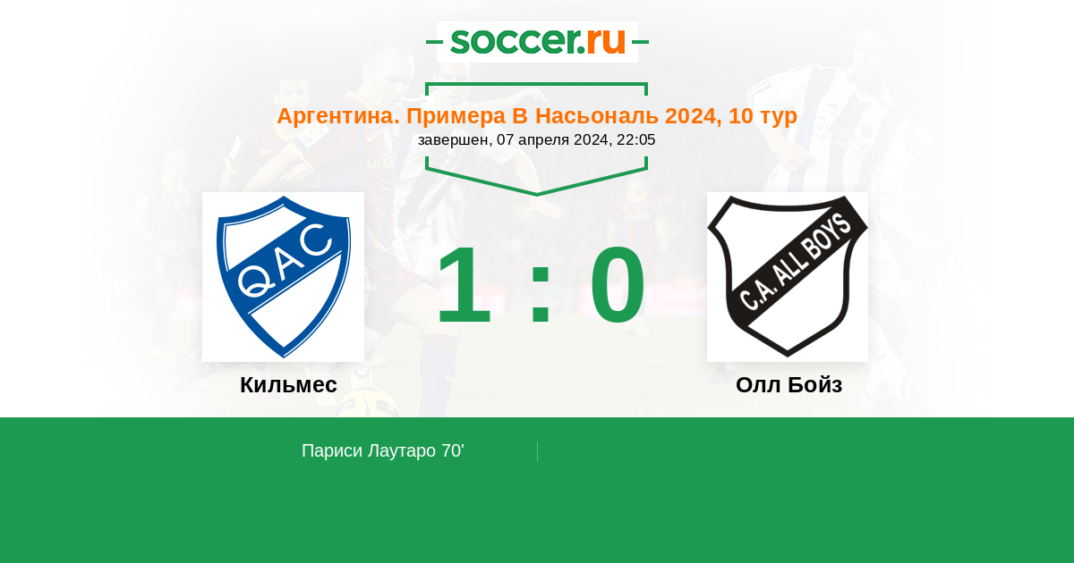 Протокол матча Кильмес против Олл Бойз