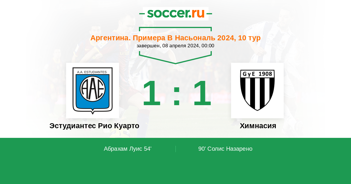 Протокол матча Эстудиантес Рио Куарто против Химнасия
