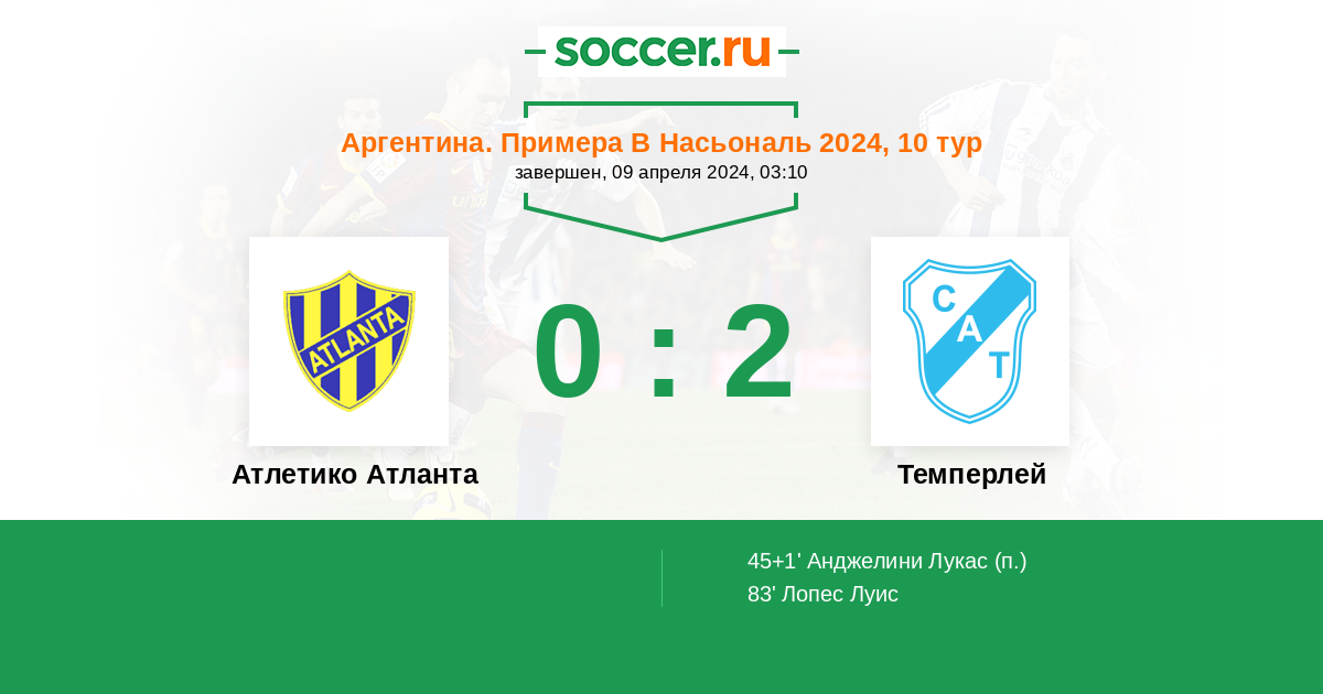 Протокол матча Атлетико Атланта против Темперлей