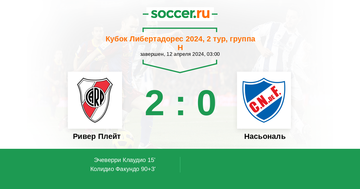 15' (1:0) Эчеверри Клаудио (19) (Борха Мигель (9))