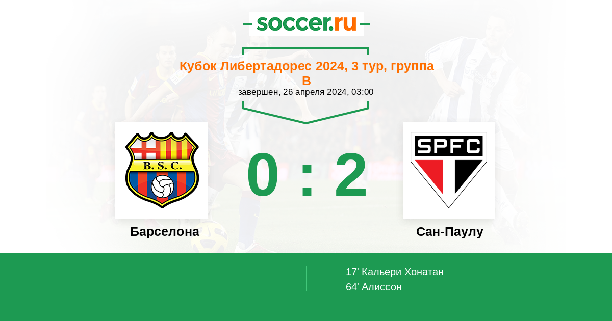 Протокол матча Барселона против Сан-Паулу