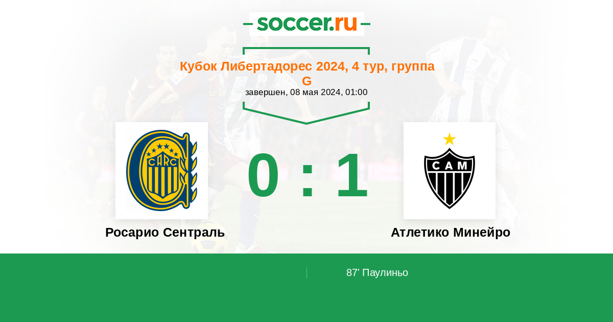 Протокол матча Росарио Сентраль против Атлетико Минейро