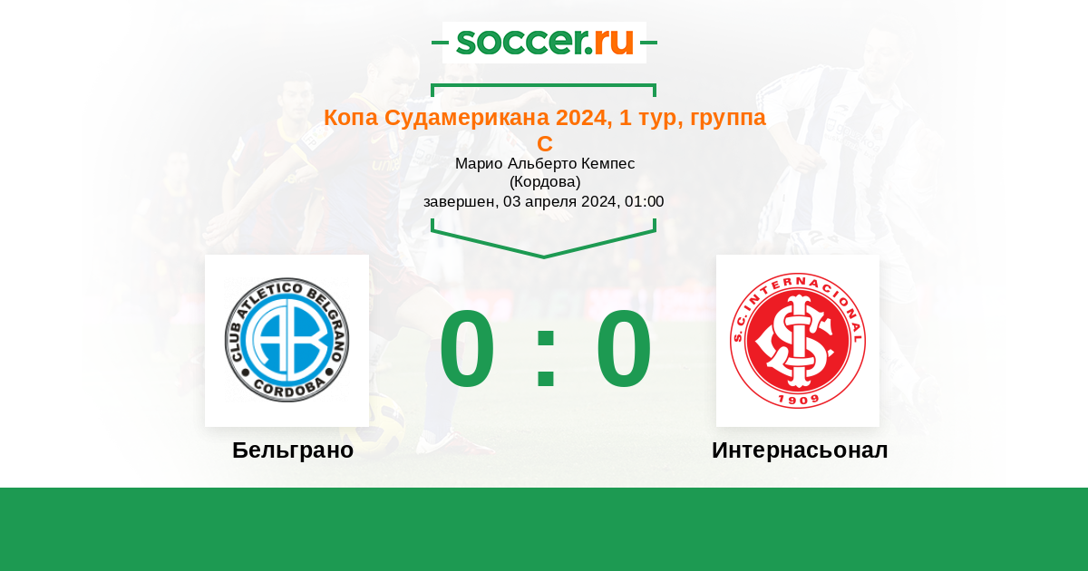 Протокол матча Бельграно против Интернасьонал