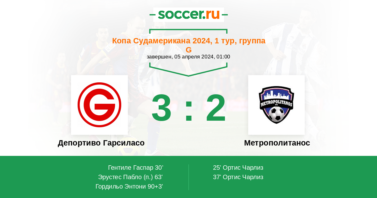 Протокол матча Депортиво Гарсиласо против Метрополитанос