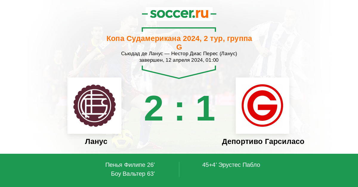Протокол матча Ланус против Депортиво Гарсиласо