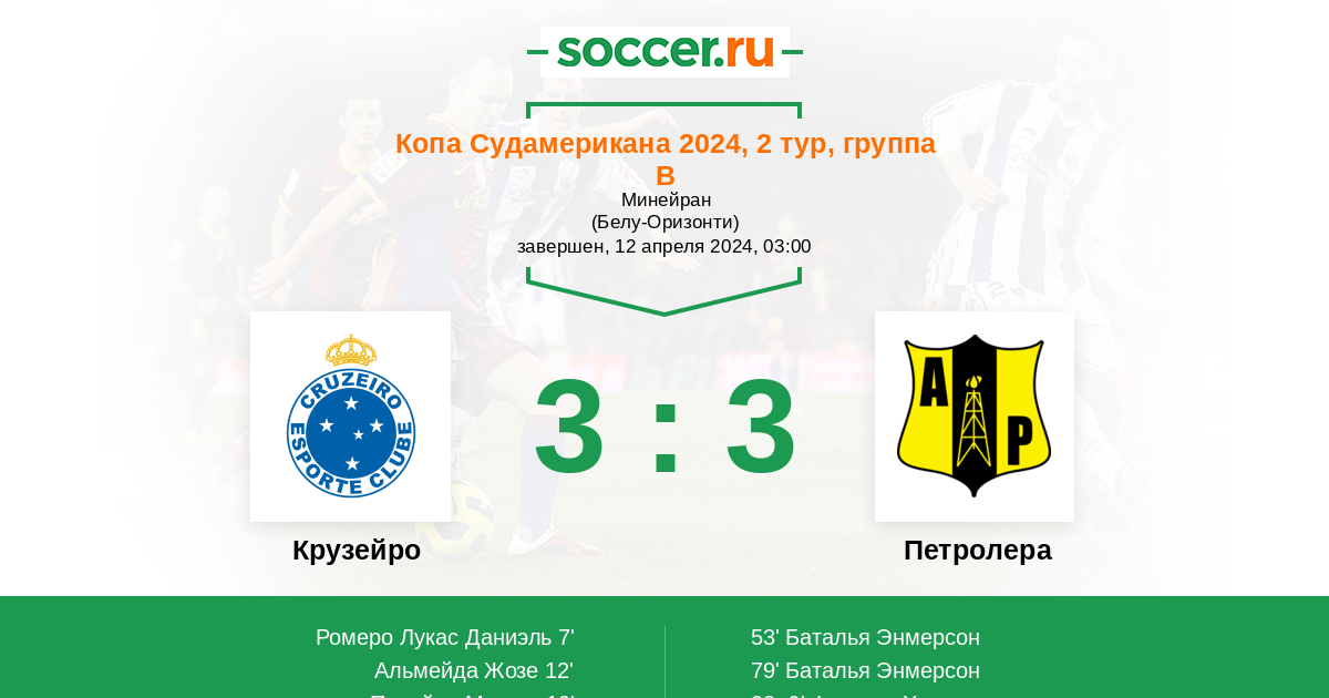 53' (3:1) Баталья Энмерсон (27) (Салданья Леонардо (16))