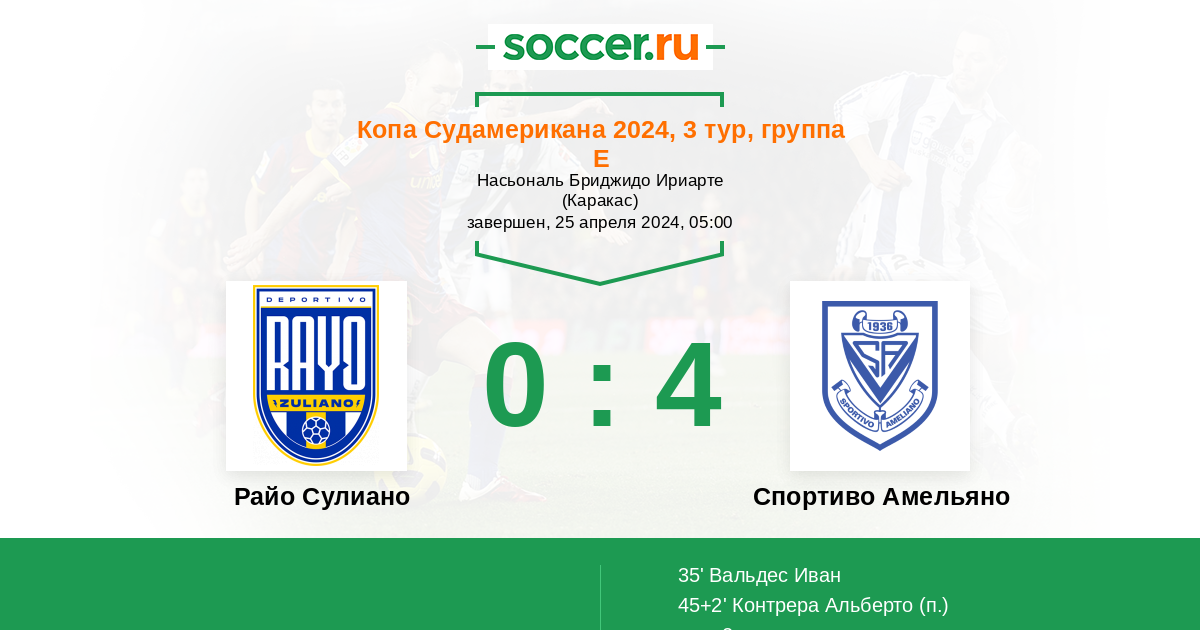 Протокол матча Райо Зулиано против Спортиво Амельяно