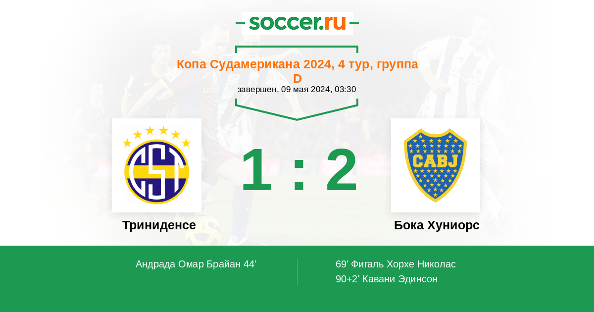 Протокол матча Триниденсе против Бока Хуниорс