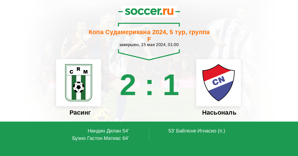Протокол матча Расинг против Насьональ