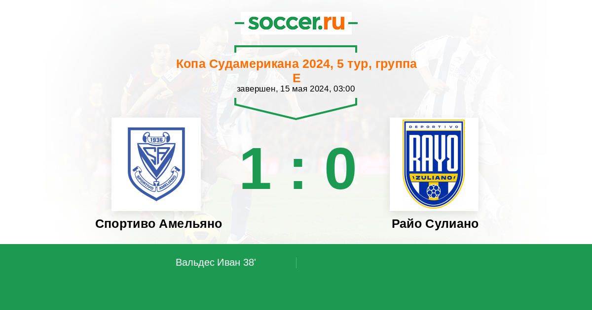 Протокол матча Спортиво Амельяно против Райо Зулиано