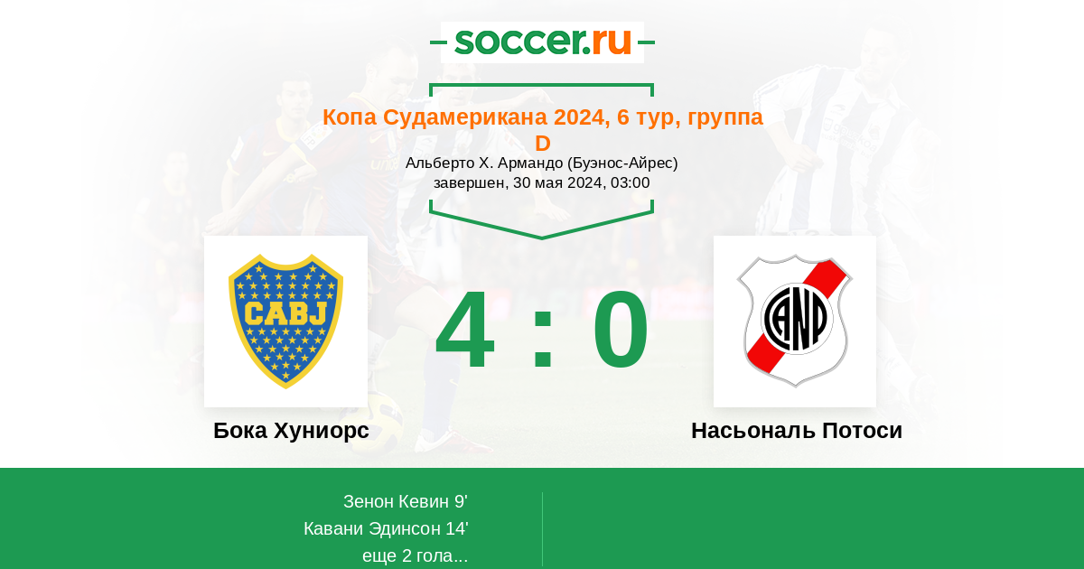 Протокол матча Бока Хуниорс против Насьональ Потоси