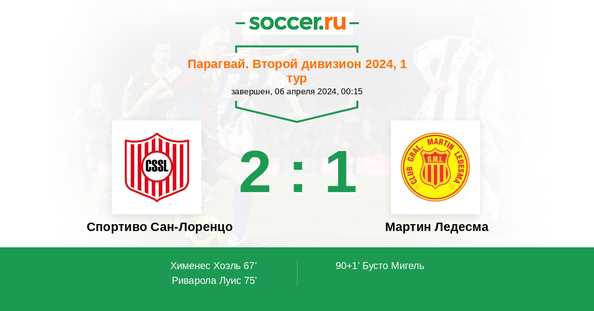 Протокол матча Спортиво Сан-Лоренцо против Мартин Ледесма