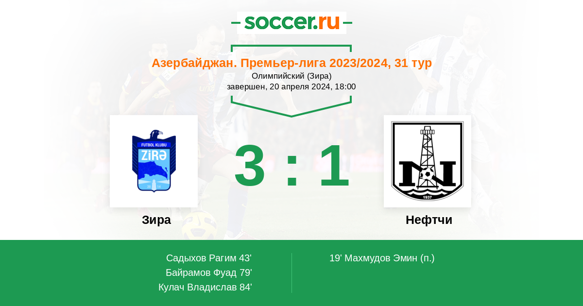 Протокол матча Зира против Нефтчи