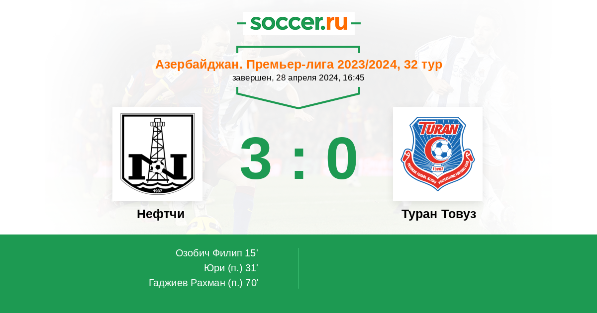 Протокол матча Нефтчи против Туран Товуз