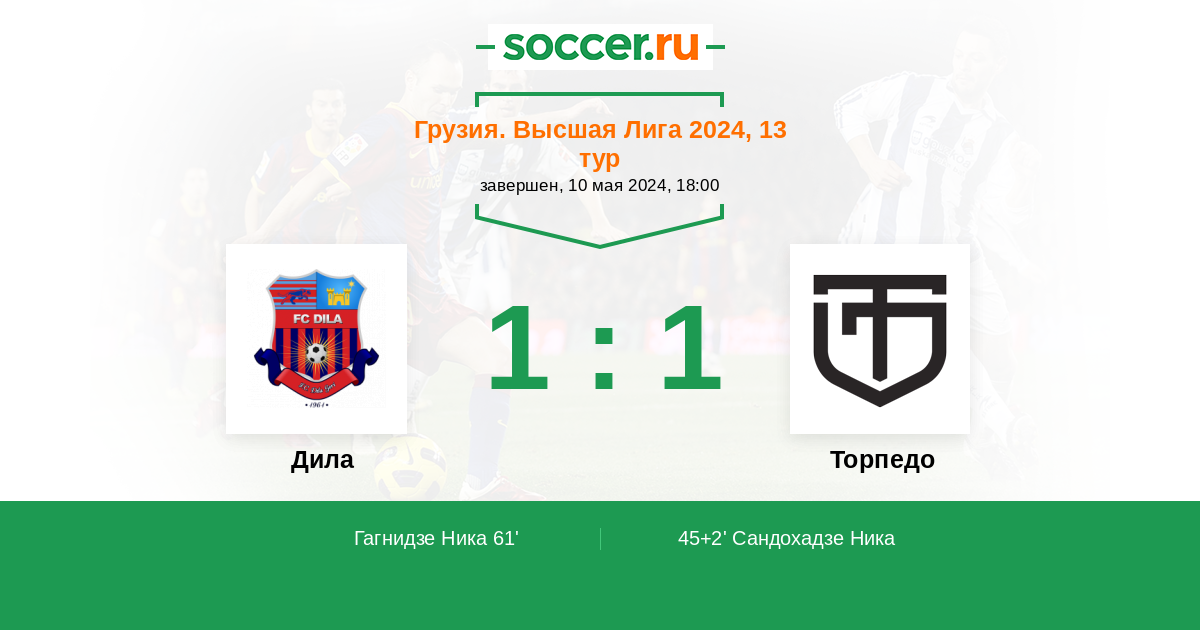 Протокол матча Дила против Торпедо