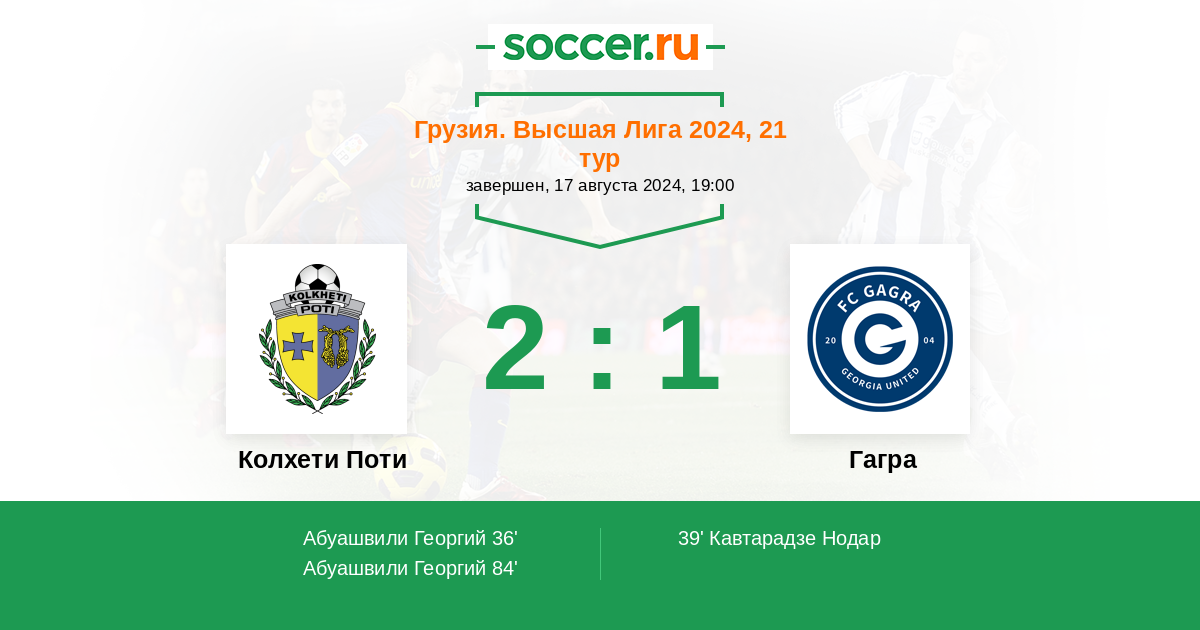 Протокол матча Колхети Поти против Гагра