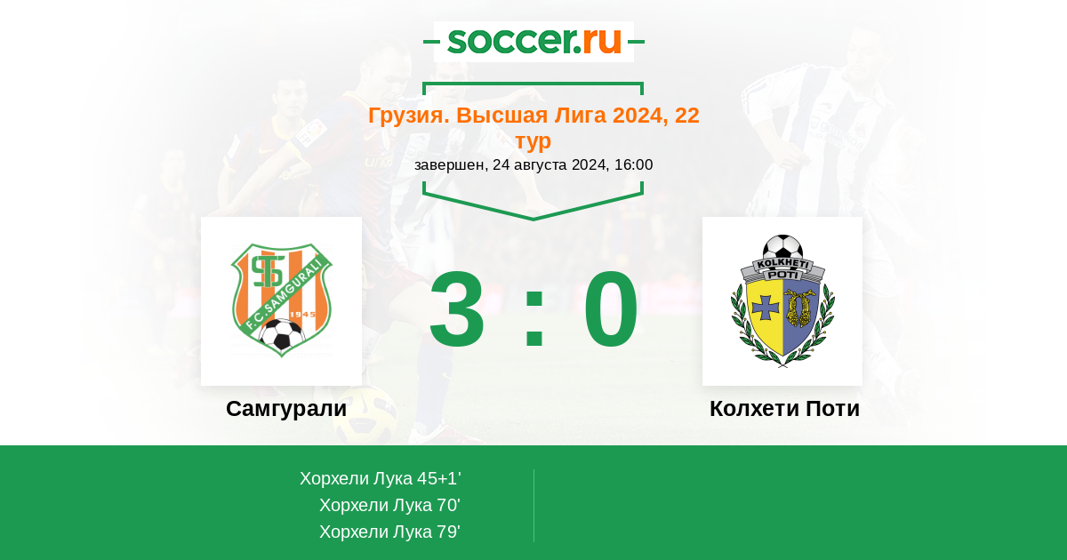 Протокол матча Самгурали против Колхети Поти