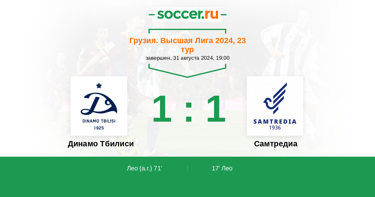 17' (0:1) Лео (14) (Ардазишвили Рати (7))