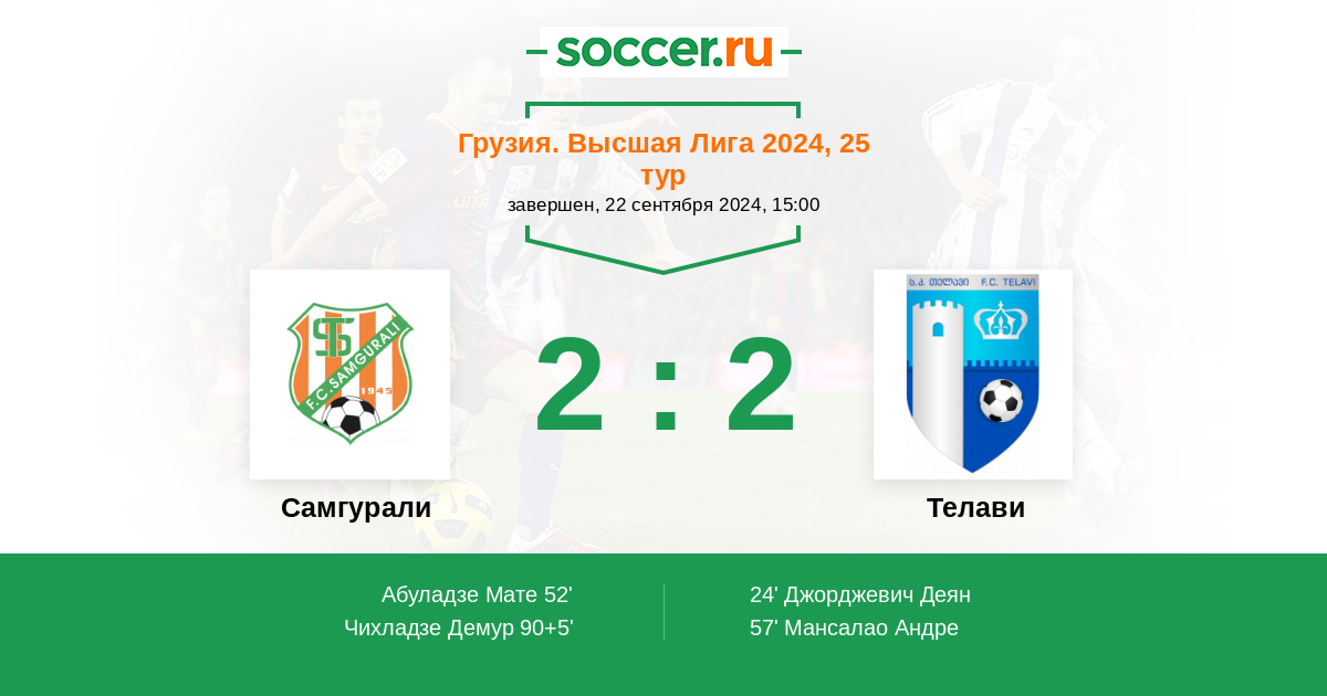 Гол90+5' (2:2) Чихладзе Демур (10) (Жефиньо Алмейда (8))