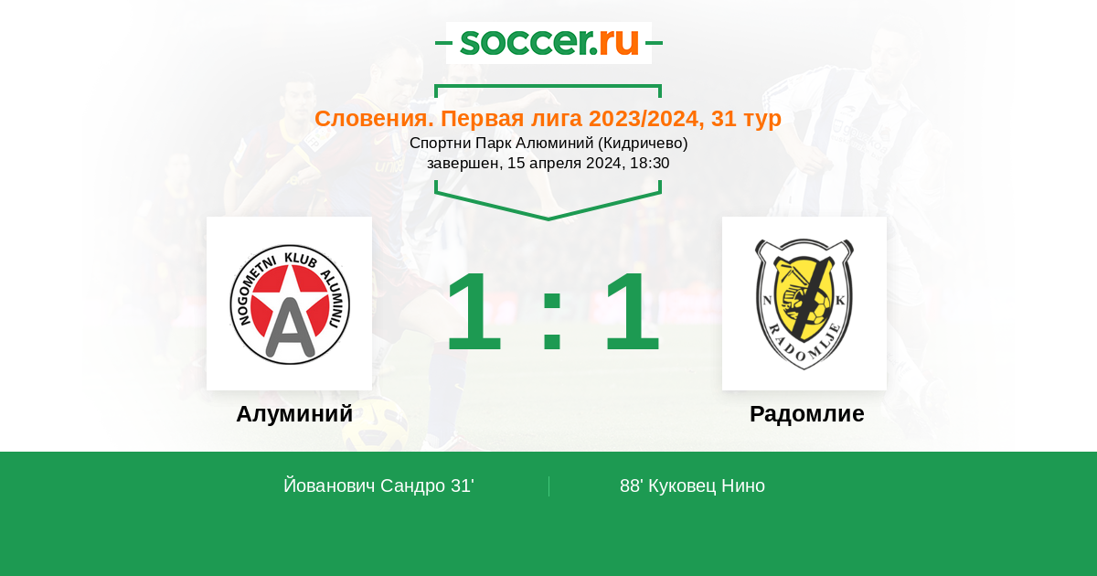 Протокол матча Алуминий против Радомлие