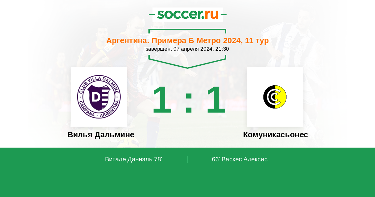 Протокол матча Вилья Дальмине против Комуникасьонес