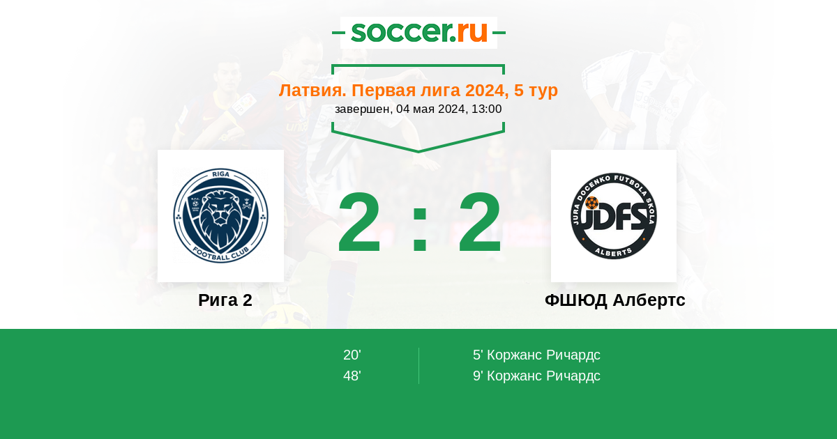 Протокол матча Рига 2 против ФШЮД Албертс