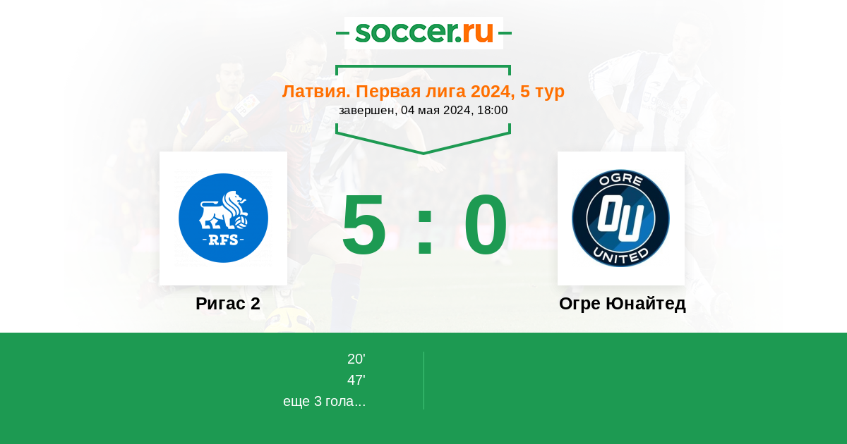 Протокол матча Ригас 2 против Огре Юнайтед
