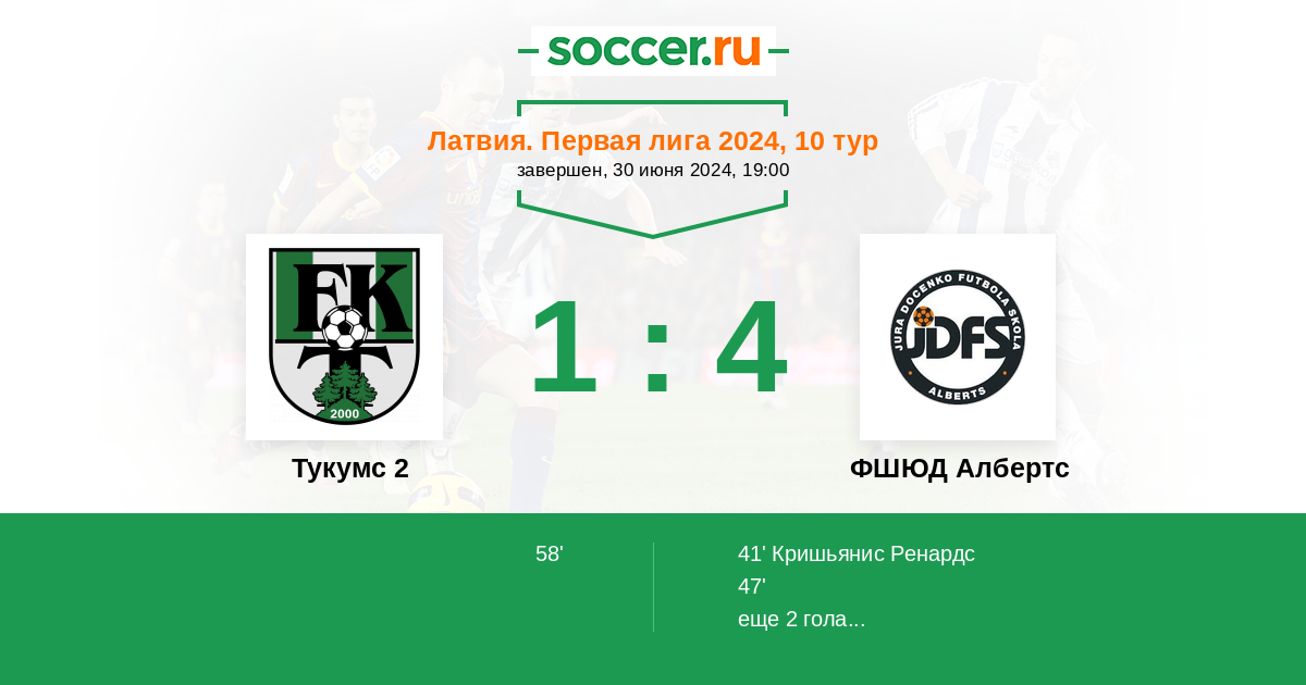 Протокол матча Тукумс 2 против ФШЮД Албертс