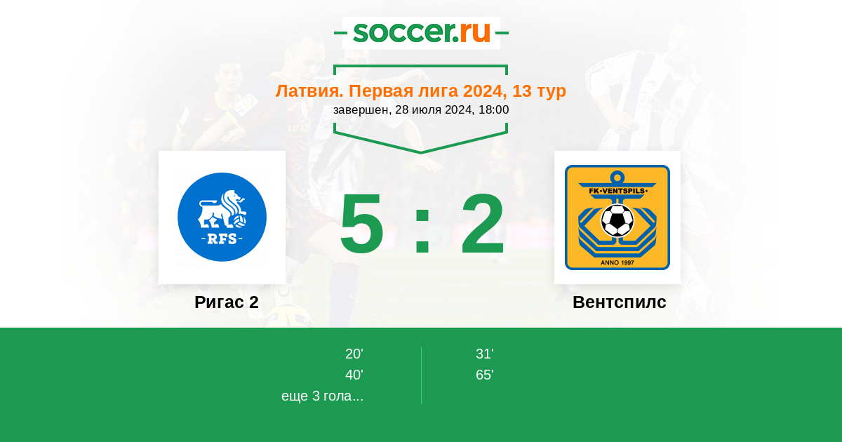 Протокол матча Ригас 2 против Вентспилс