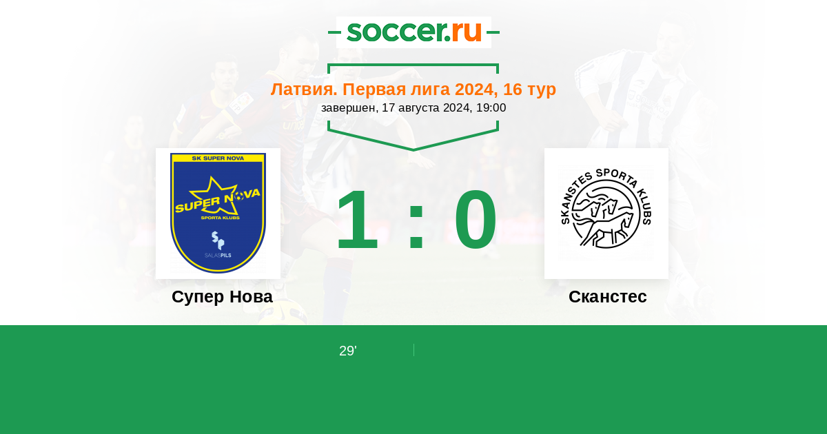 Протокол матча Супер Нова против Сканстес