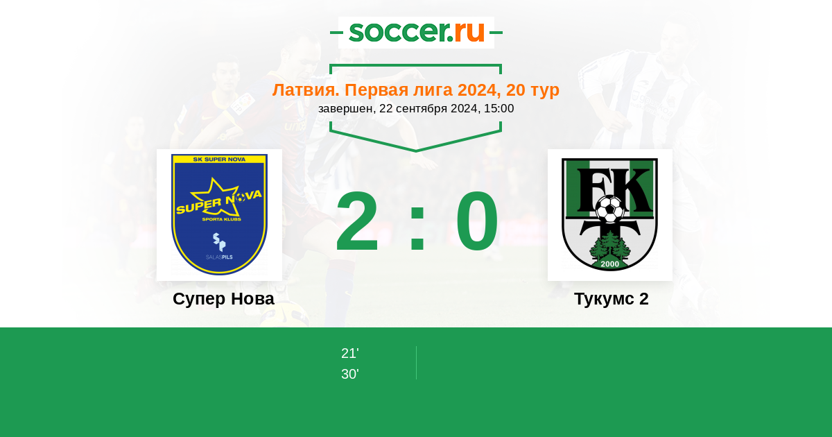 Протокол матча Супер Нова против Тукумс 2