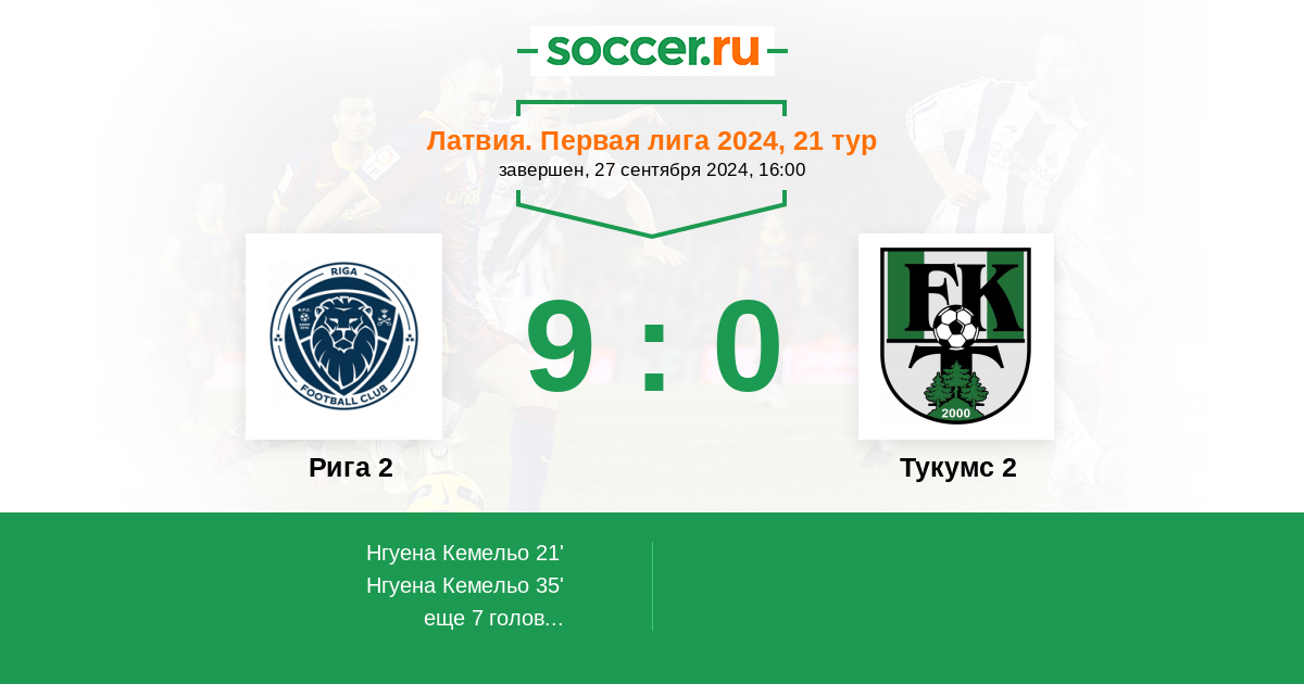 Протокол матча Рига 2 против Тукумс 2