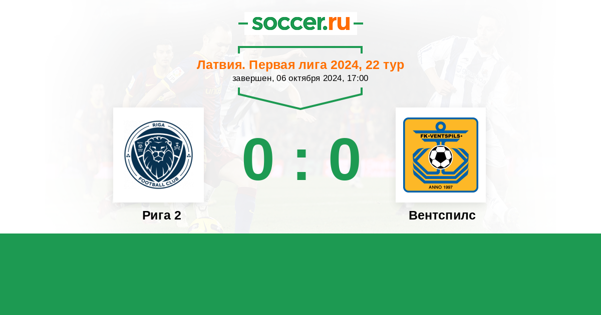 Протокол матча Рига 2 против Вентспилс